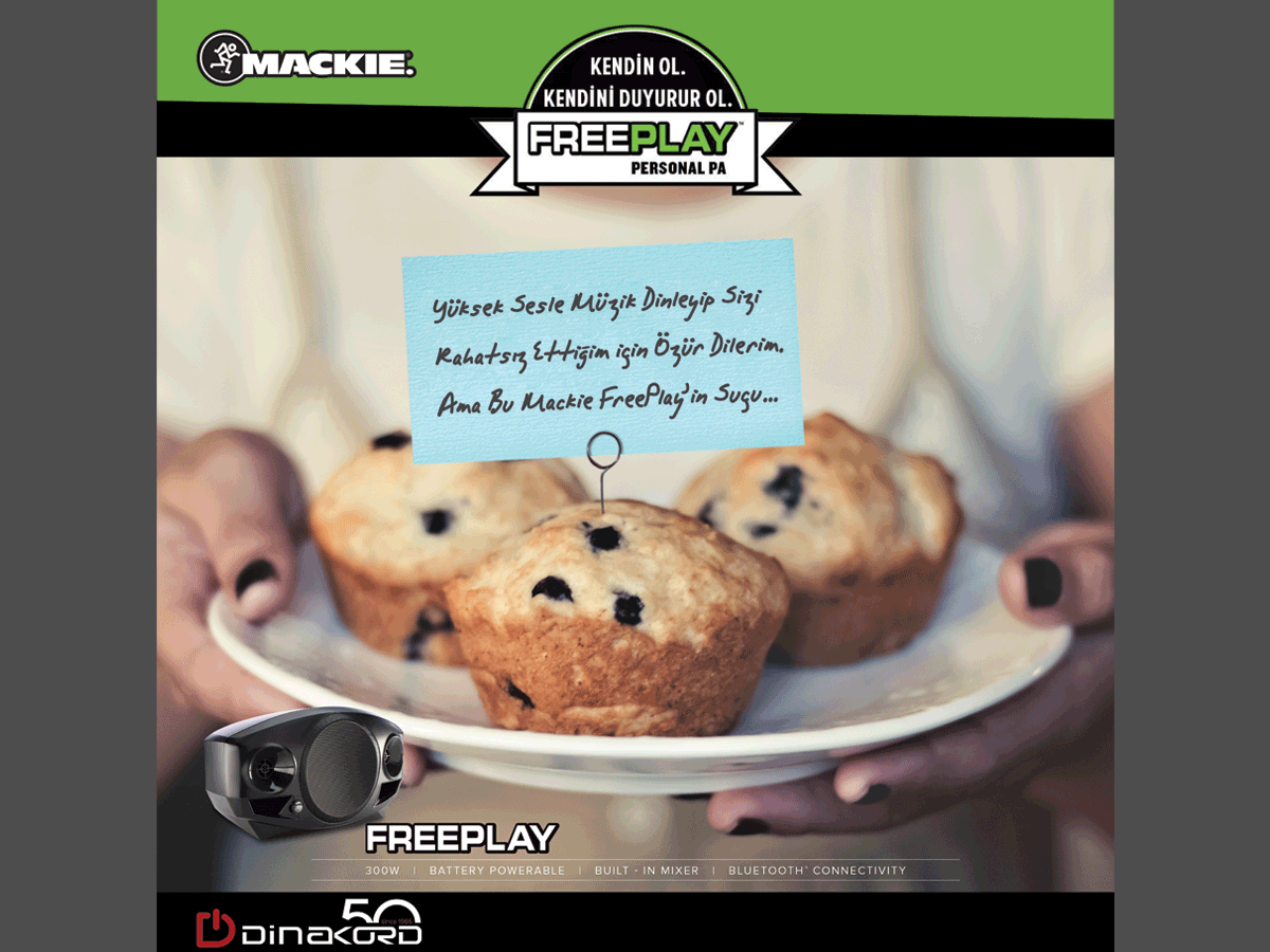 Dinakord’un distribütörlüğünü yaptığı ABD’li müzik sistemleri markası olan Mackie’nin Freeplay ürününün Facebook tanıtım çalışması...